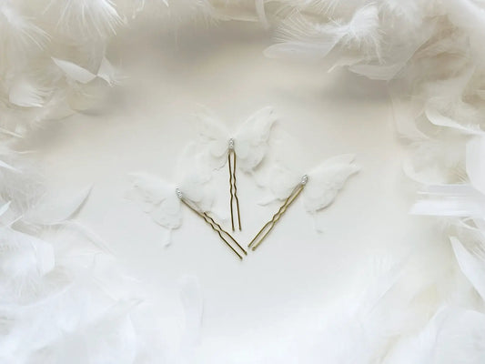 Set «Flower Girl» | 3 forcine in organza di seta | farfalle bianche | Fatto a mano