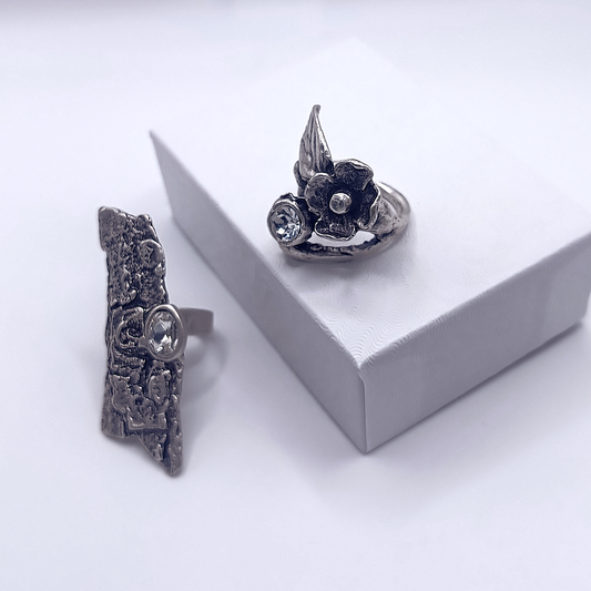 Ancient Petal | Set Anelli in Argento Anticato con Cristallo