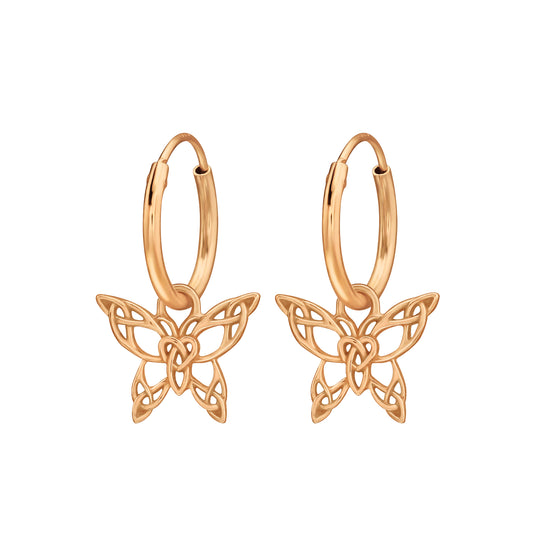 Faeknot | Orecchini a Cerchio con Farfalla in Argento 925 | Placcatura Oro Rosa