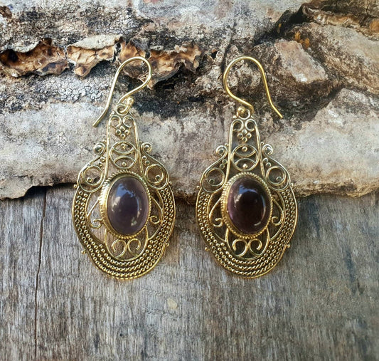 Orecchini pendenti | Ottone | Ametista | Fatto a mano