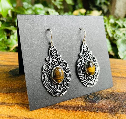 Orecchini pendenti | placcato argento | Occhio di tigre | Fatto a mano