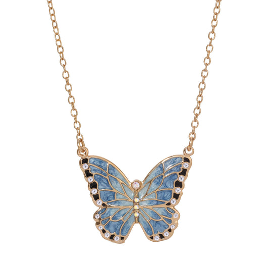 Collana con ciondolo a farfalla smaltato blu | Cristalli | Oro 14k