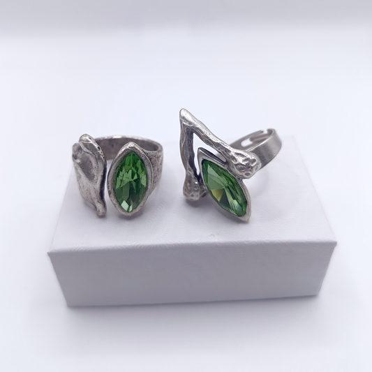 Set di Anelli Cristallo verde | Ottone Placcato in Argento | Misura libera