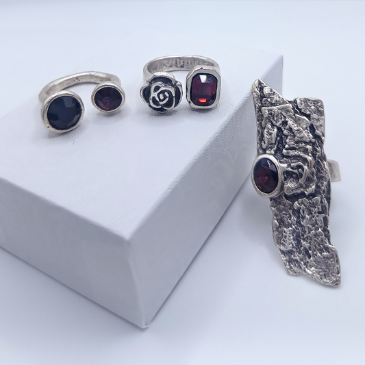 Ancient Petal | Set Anelli in Argento Anticato con Cristallo