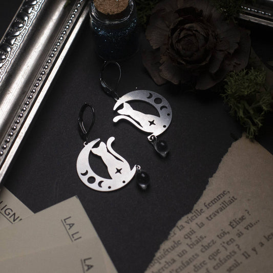 MoonCat | Orecchini a forma di gatto | acciaio inossidabile | Fatto a mano