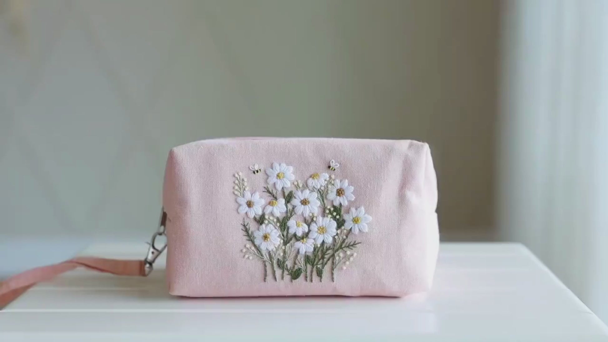 Daisy Bag | Beauty Case | Lino con Margherite Ricamate a Mano | Artigianale