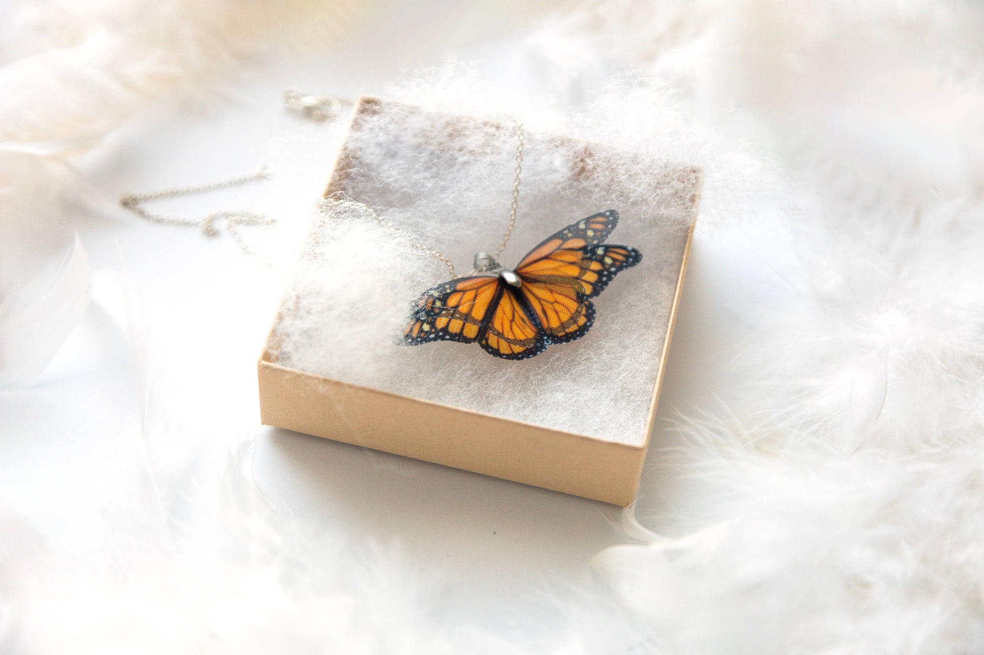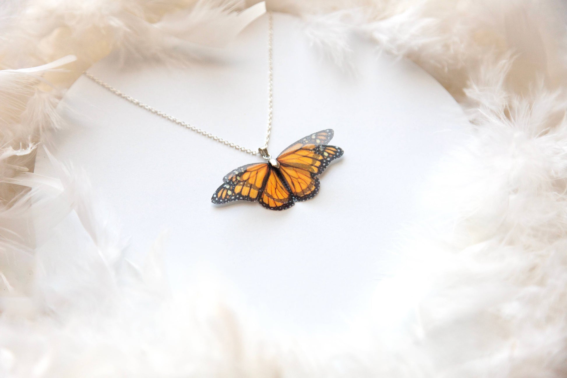 Collana con ciondolo a forma di farfalla monarca fatta a mano in stile boho