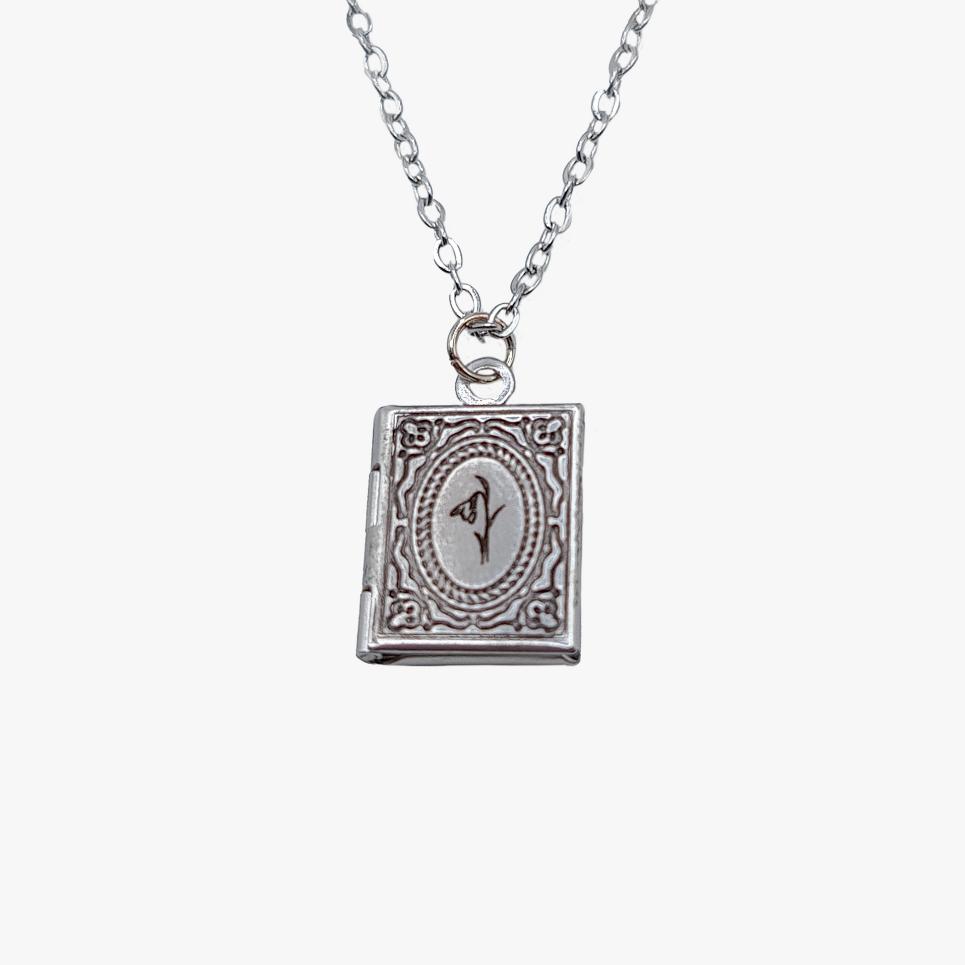 Scopri la magia di questa collana con piccolo medaglione a forma di libro, realizzata in ottone argentato massiccio. All’interno puoi scrivere il tuo messaggio personale, accuratamente ripiegato per assomigliare alle pagine di un vero libro, rendendo ogni gioiello unico e speciale.