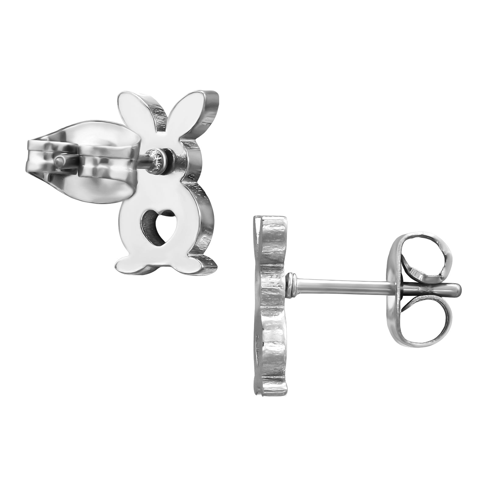 Dolci e originali, questi orecchini a lobo con coniglietto traforato a forma di cuore sono realizzati in Acciaio Inossidabile, pensati per offrire resistenza, comfort e durata nel tempo.