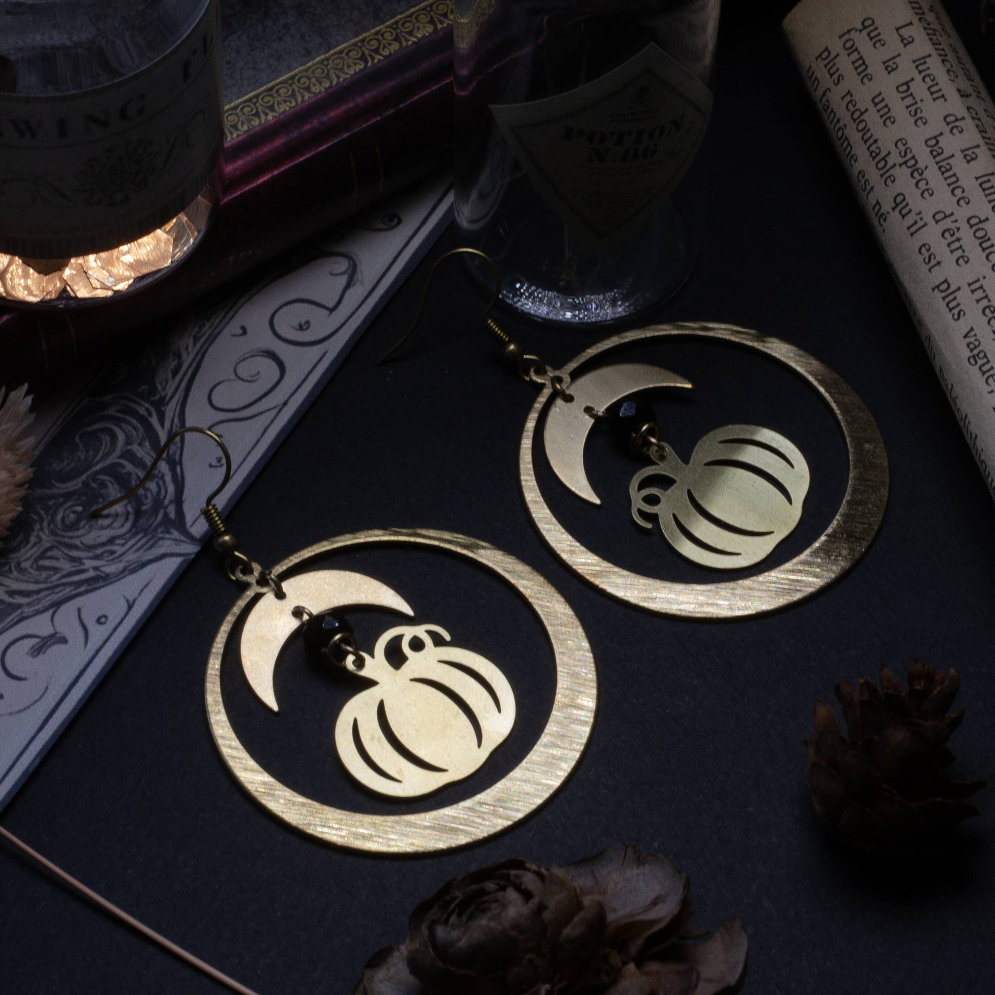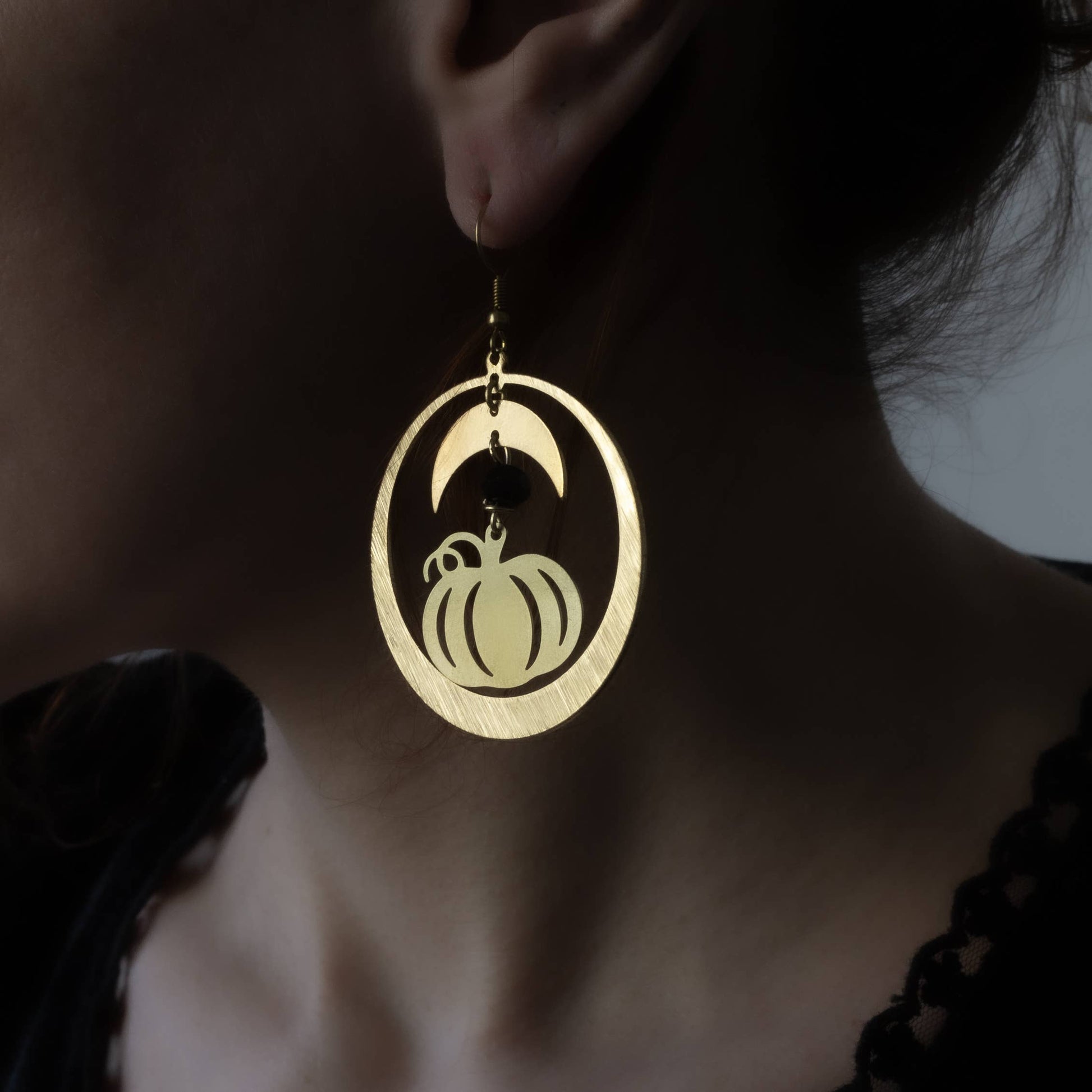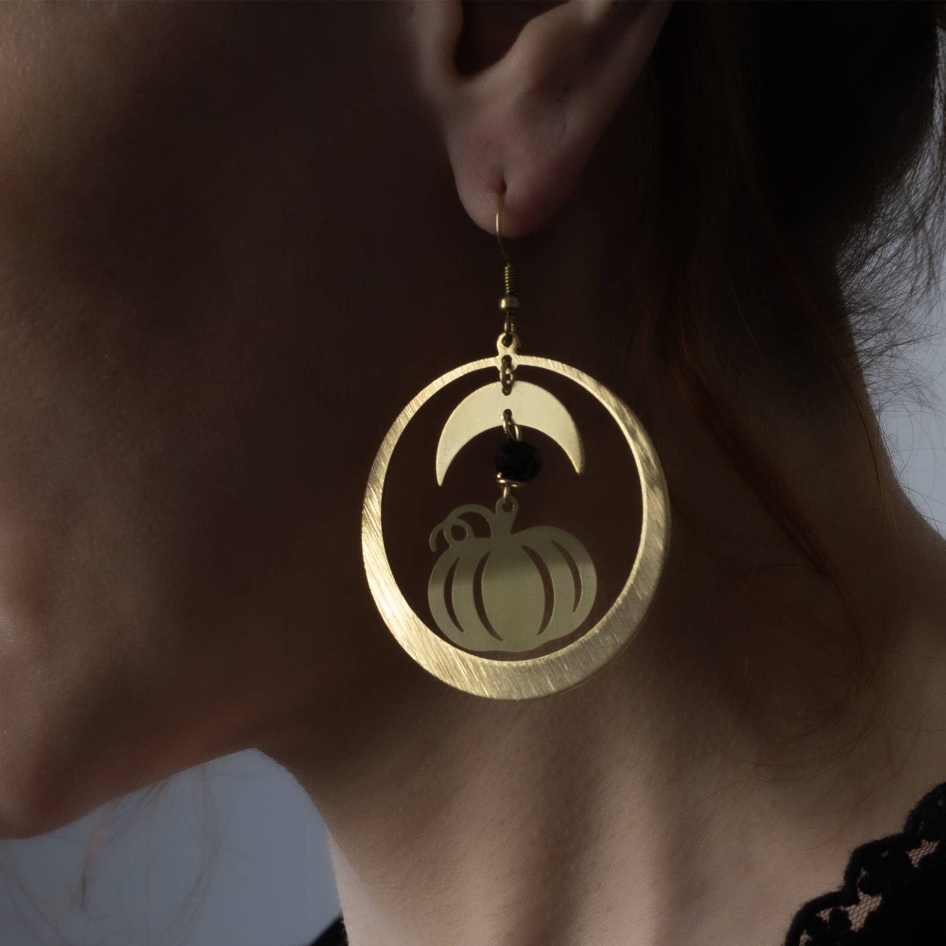 Pumpkin Magic | Orecchini a cerchio a forma di zucca | Halloween | ottone | Fatti a mano