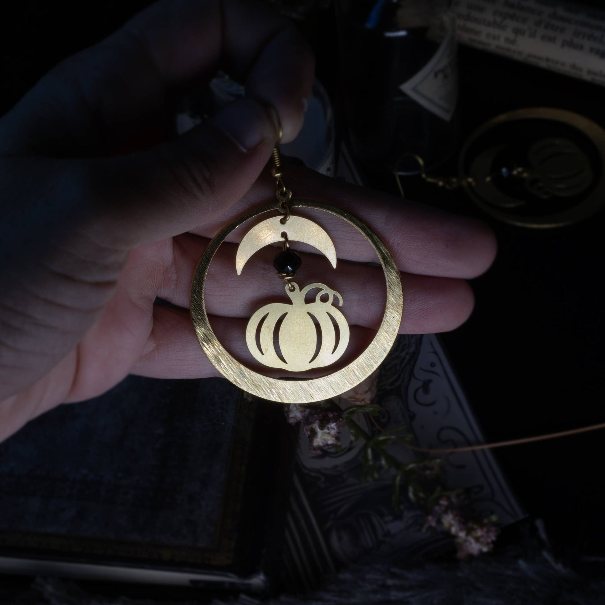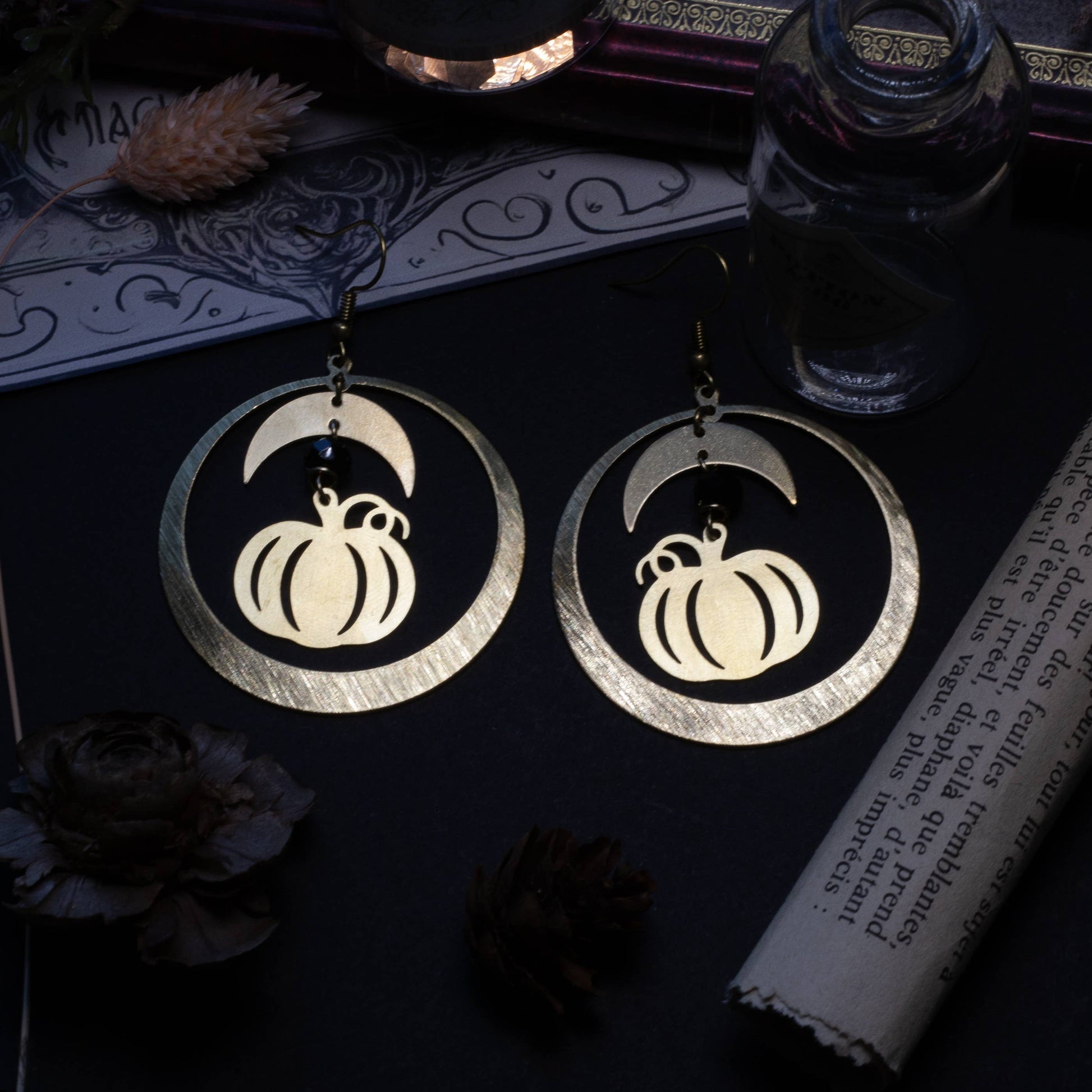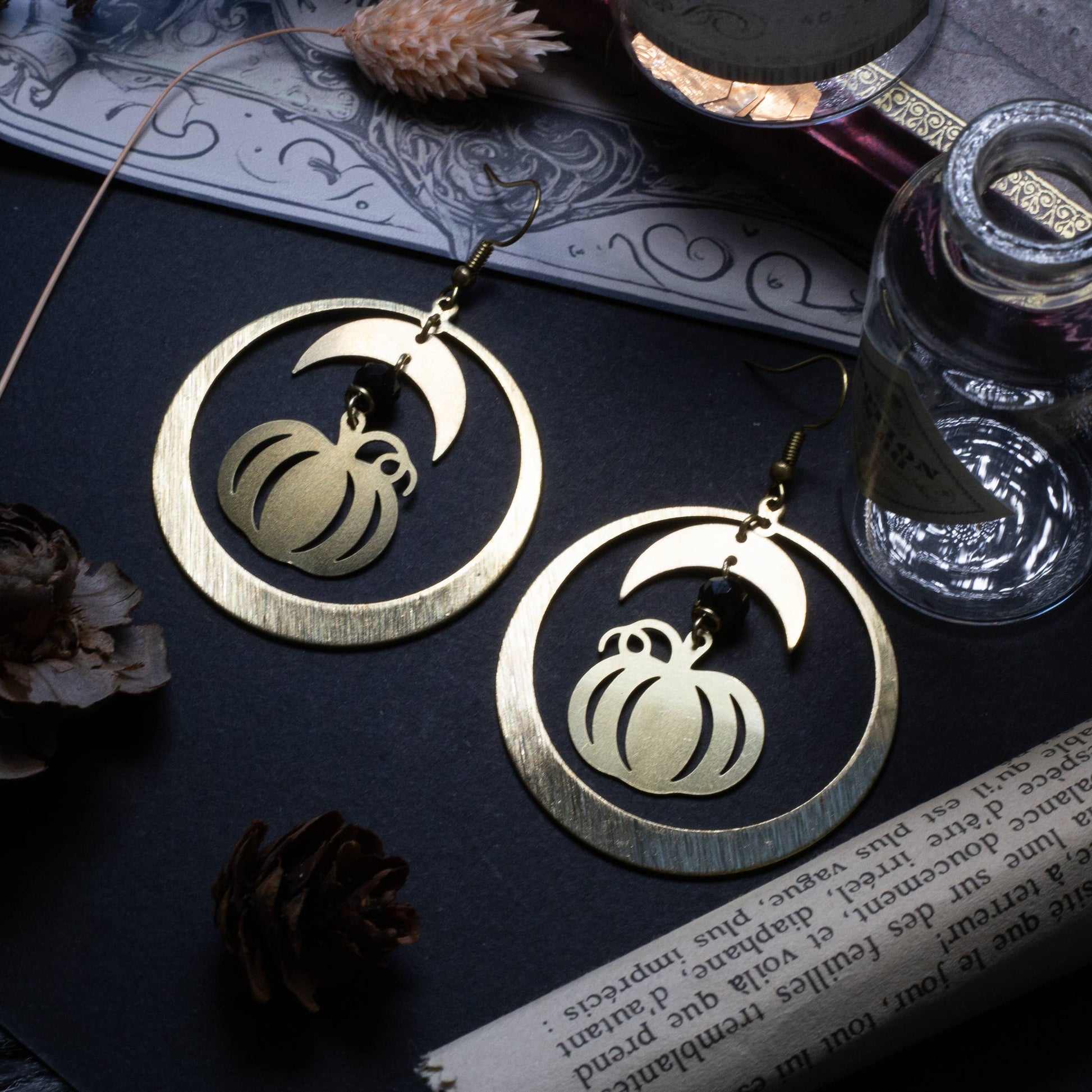 Pumpkin Magic | Orecchini a cerchio a forma di zucca | Halloween | ottone | Fatti a mano