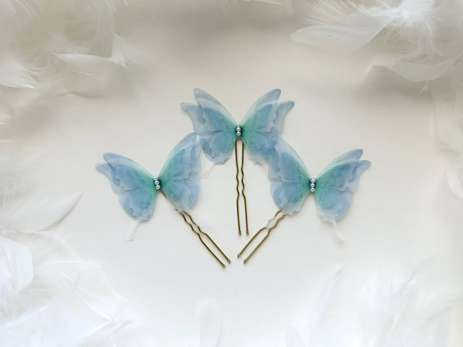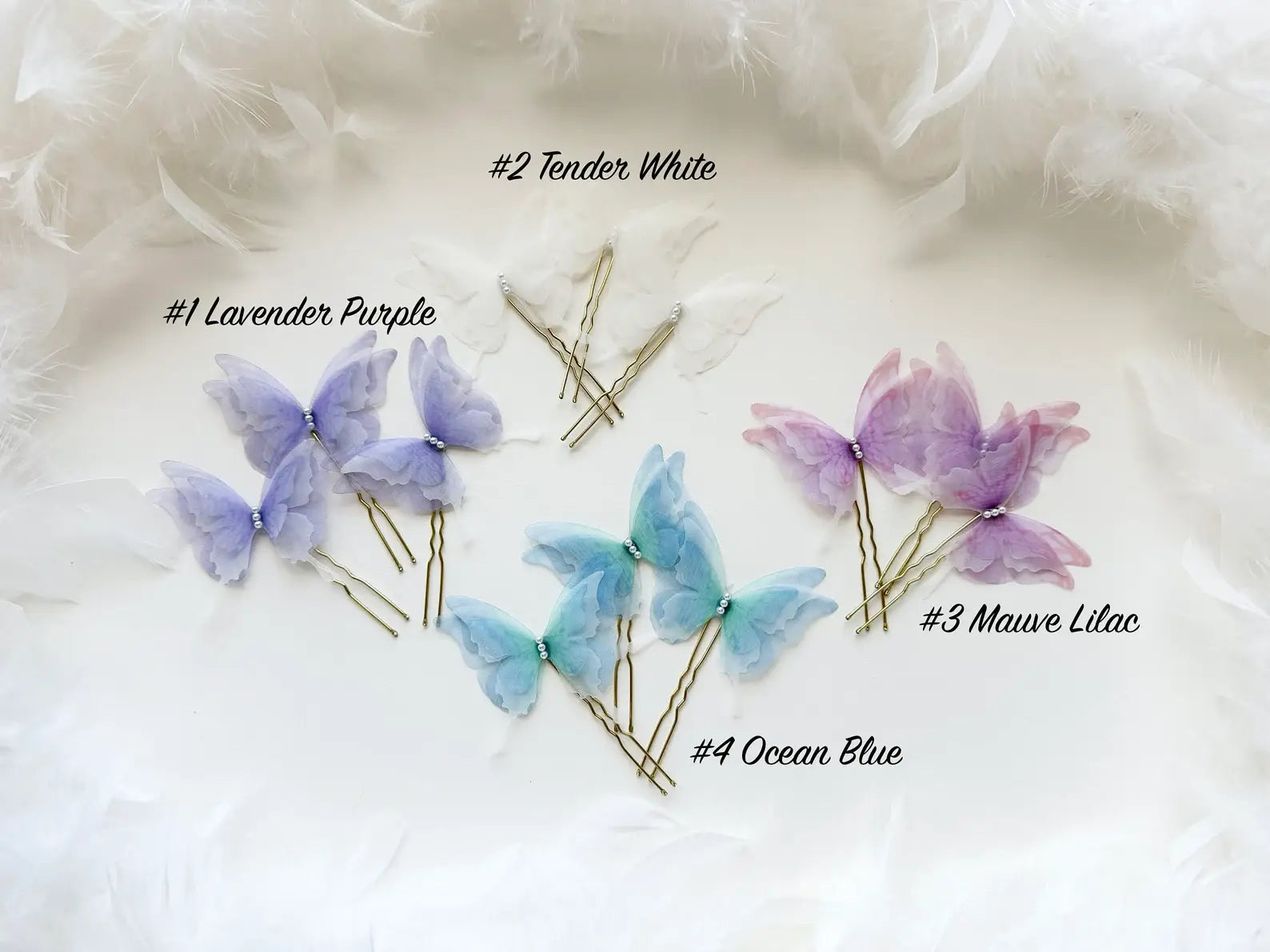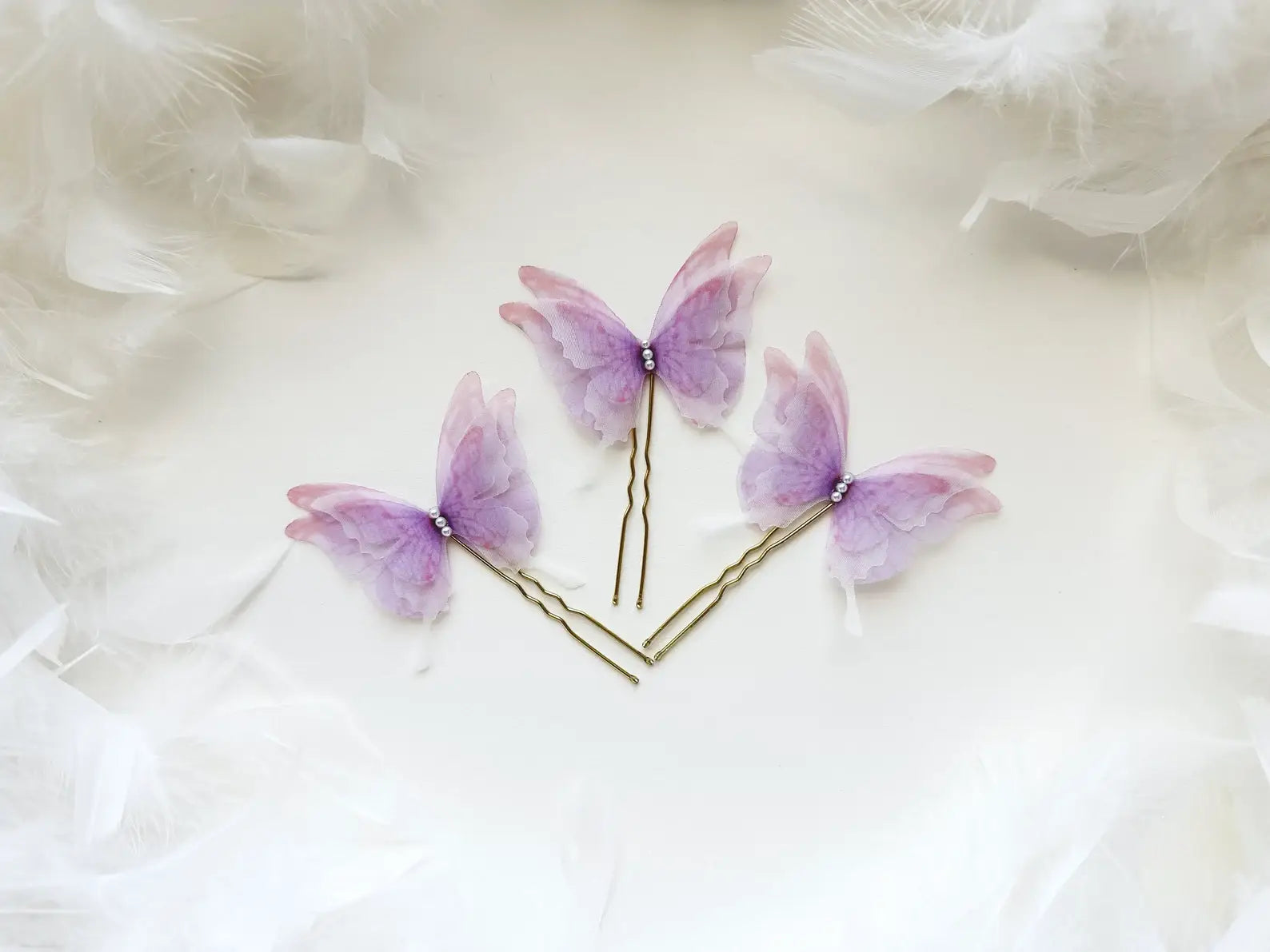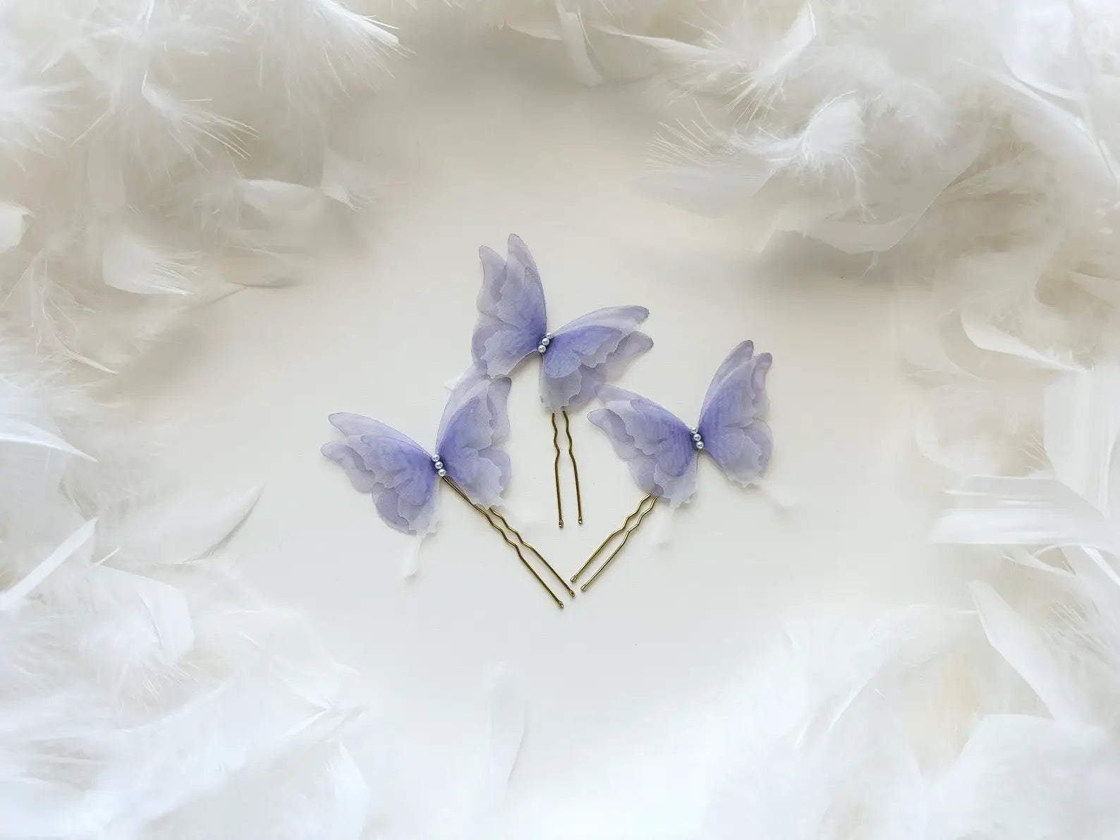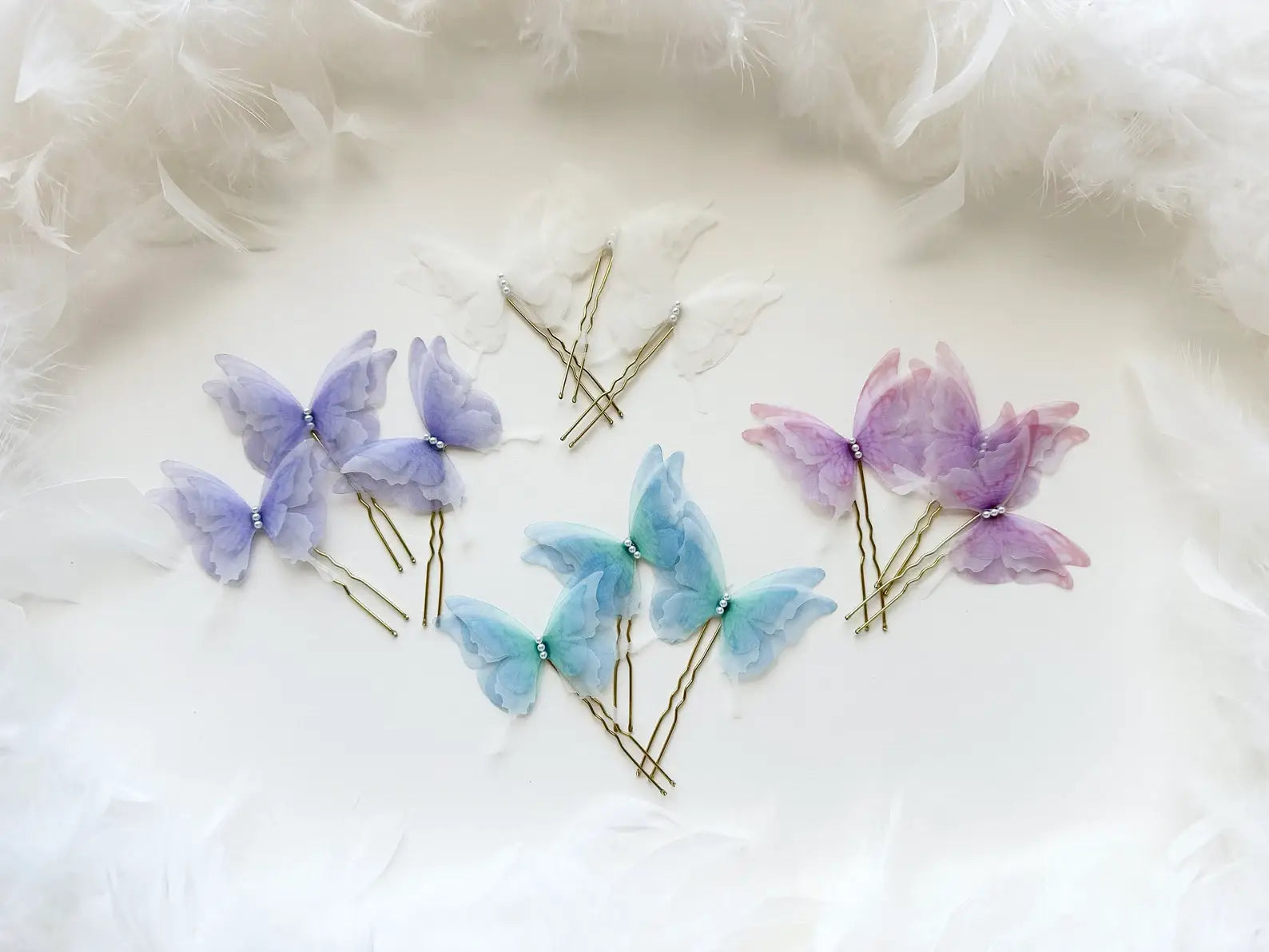 Aggiungi un tocco di fantasia al tuo look con queste delicate forcine a farfalla in organza di seta «Flower Girl».