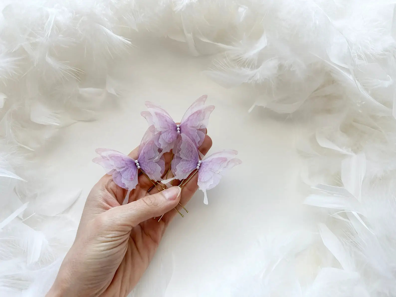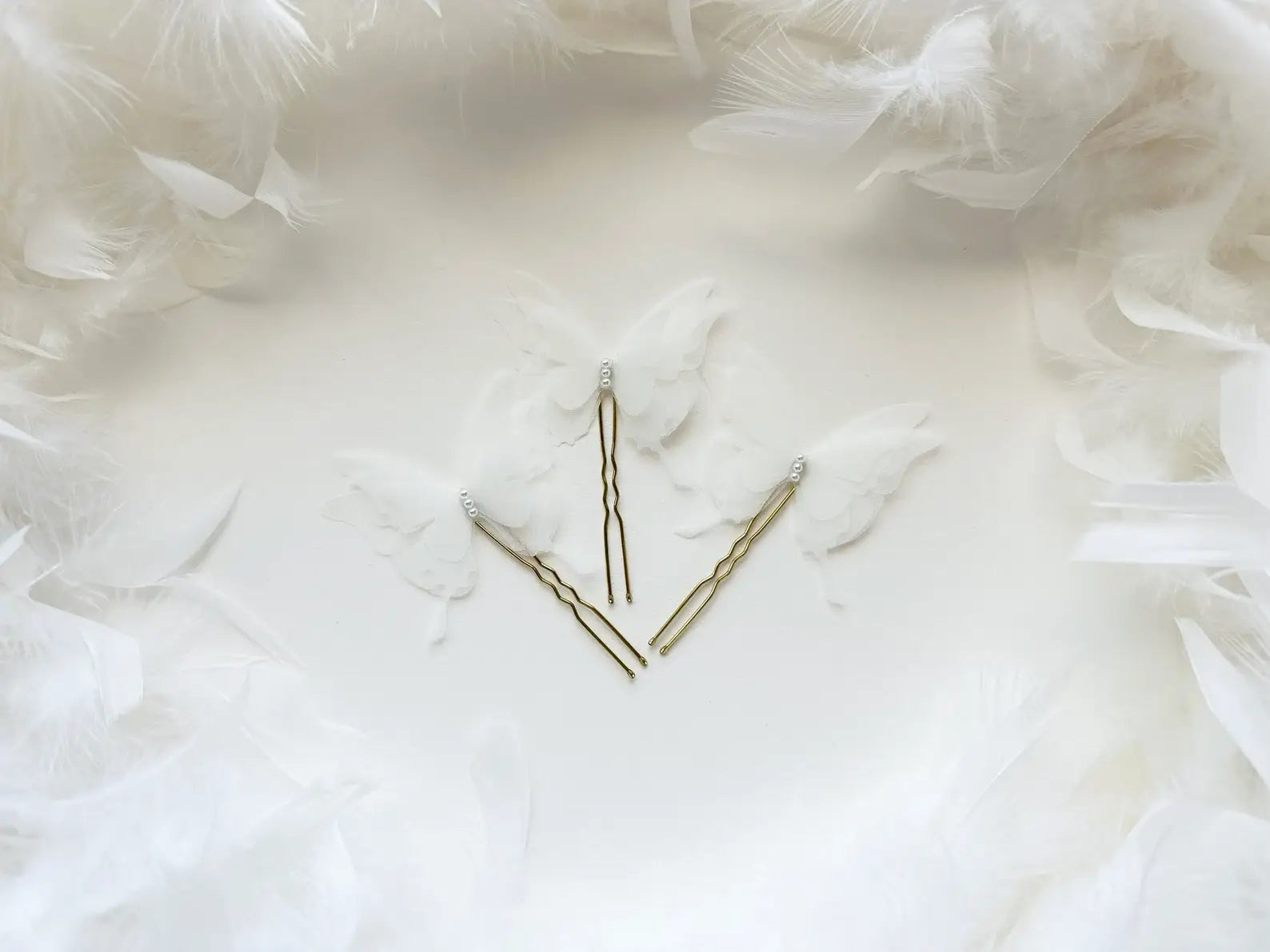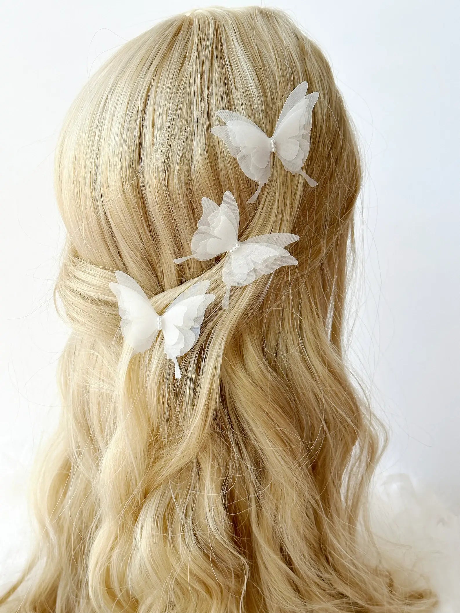 Set: «Flower Girl» di 3 forcine a forma di farfalla in organza di seta